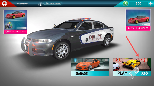 1、点击【PLAY】,进入模式选择界面,可看到不同车辆及初始金币,准备开启停车挑战。