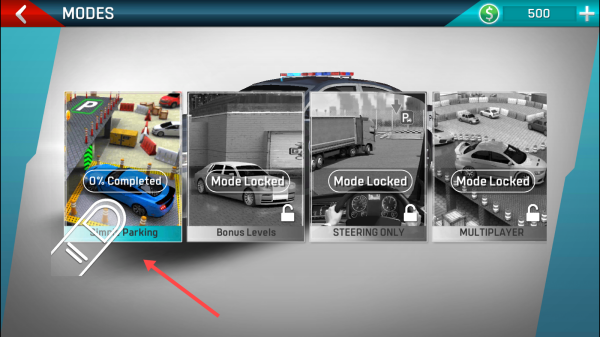 2、在模式页选【Parking】(0%Completed),进入停车关卡,开始首场停车任务,熟悉规则。