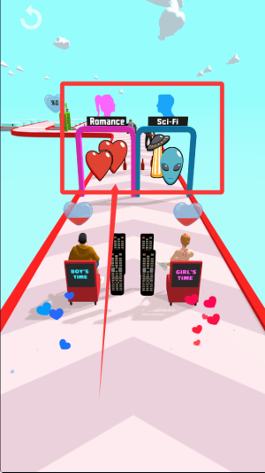 1、玩家需要通过左右滑动屏幕控制情侣角色之间的距离,既要避免距离过近导致争吵,也要防止距离过远错失道具。