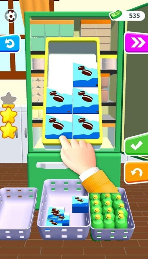 4、游戏内置成就系统和奖励机制,玩家可以通过高效整理获得星星奖励,解锁特殊冰箱皮肤和道具,提升游戏可玩性。
