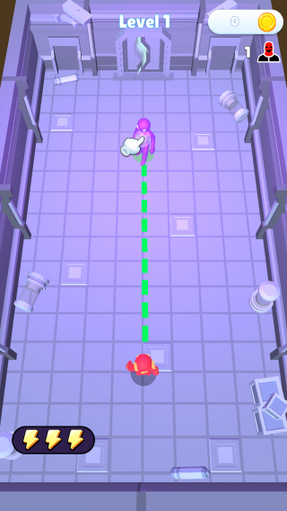 1、属于休闲射击类,玩家操控角色瞄准敌人,通过射击等操作闯关,利用场景和技能击败对手,画面呈现出简洁的3D卡通风格,有角色、敌人、场景道具等元素。