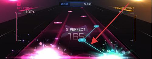 1、进入游戏演奏界面,紧盯轨道音符,在其抵达判定区时精准点击,争取【S PERFECT】评价,积累分数提升表现。