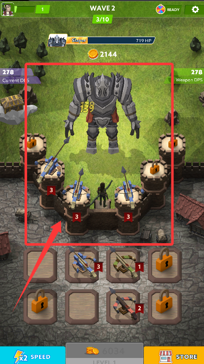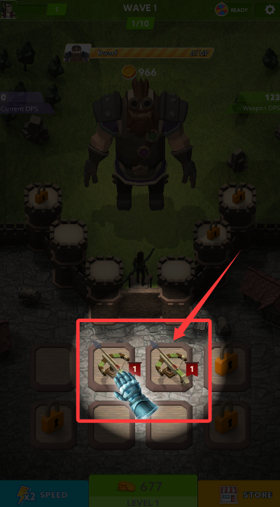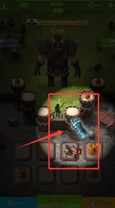 1、通过合并相同的初始箭塔,建立战场第一道防线抵御怪物入侵。