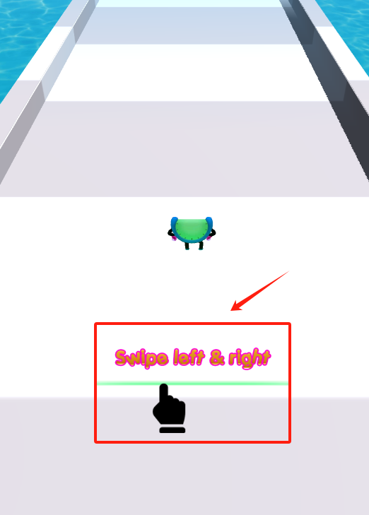 1、注意红框里手指左右滑动的提示,按照提示左右滑动屏幕,就能控制西瓜角色顺利过桥,避免掉落。
