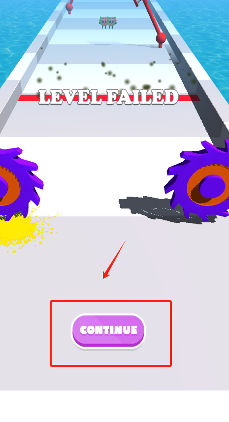 3、游戏失败时不用慌,直接点击下方的紫色“CONTINUE”按钮,就能重新挑战当前关卡。