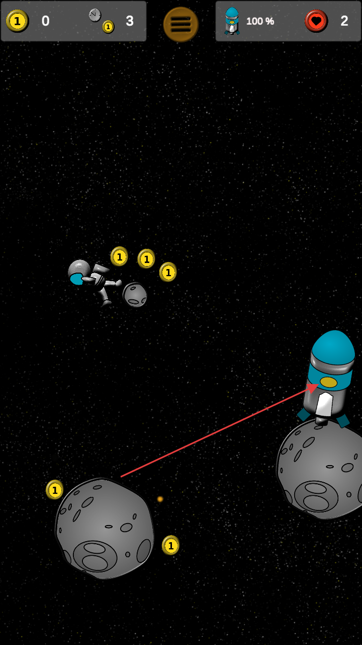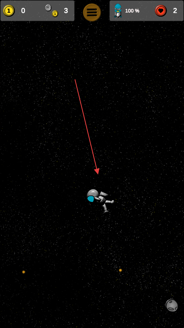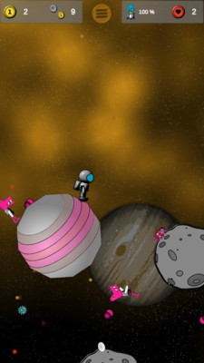 2、在太空,滑动屏幕控制迈克移动,躲避陨石等障碍,收集金币,靠近火箭等目标。