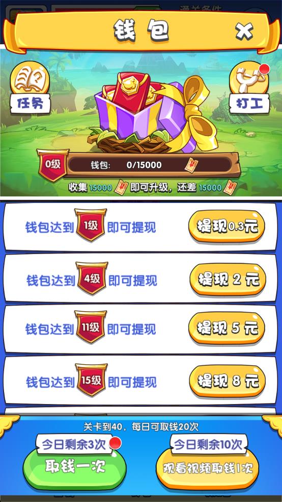 3、闯关成就感足:每关目标清晰,完成消除挑战后能获得明确的奖励反馈,即使是简单的闯关,也能带来小小的成就感,让人乐于持续挑战。