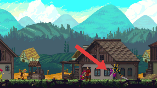 3、场景为中世纪风格的村庄,有木质房屋、水井等建筑,背景是连绵的山脉和茂密的树林,是游戏中的可操控角色或NPC。