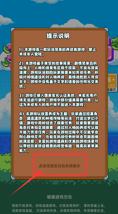 1、进入游戏后仔细阅读温馨提醒,轻触屏幕任意位置可跳过引导页面。