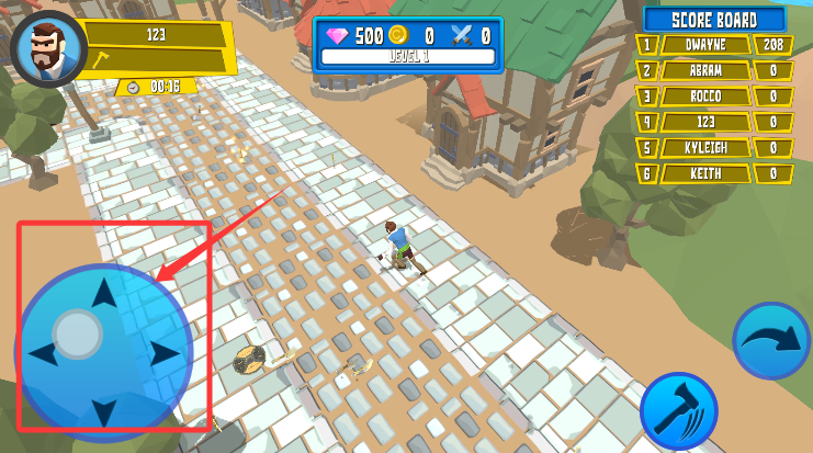3、通过左下角控制虚拟摇杆实现角色走位,并配合点击释放技能展开攻击。