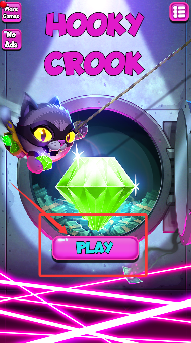 1、进入游戏主界面,点击粉色“PLAY”按钮,开启操控角色盗宝挑战。