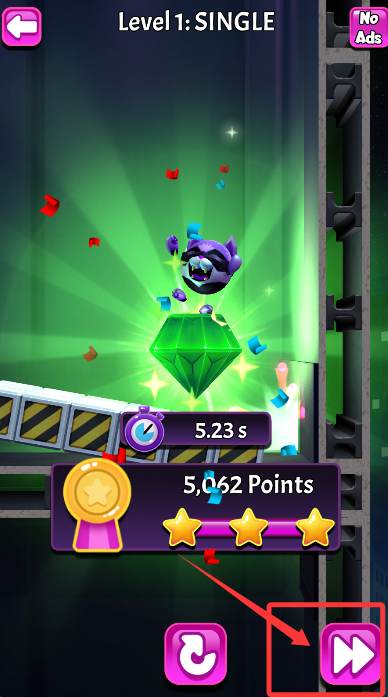 3、成功获取宝物后界面呈现结算信息,点击右下角箭头按钮,进入下一盗宝关卡。