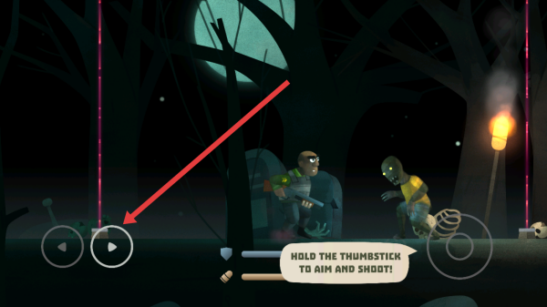 1、按提示“HOLD-THE-THUMBSTICK-TO-AIM-AND-SHOOT!”,用左侧按钮移动角色,学习射击操作。