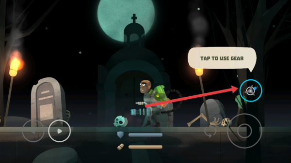 2、遇到“TAP-TO-USE-GEAR”提示,点击对应道具图标,使用gear辅助战斗,应对敌人。
