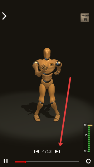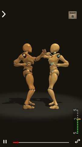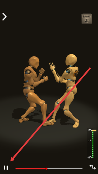 3、对练演示时,利用控制按钮,暂停/播放、调整进度,观察两个木人对练动作,掌握技法。