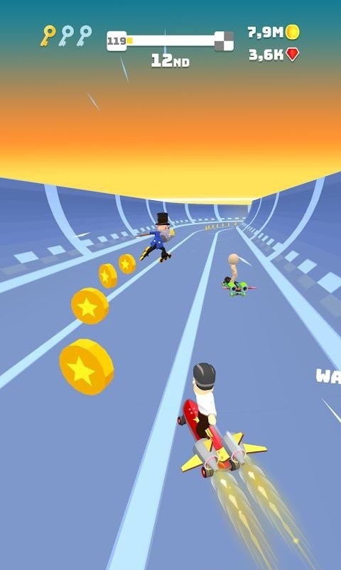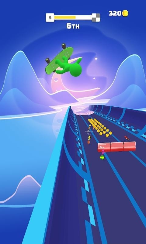 1、优先观察赛道地形与障碍物分布,预判安全路径,通过快速点击屏幕跳跃,滑动控制方向,长按激活特殊技能。