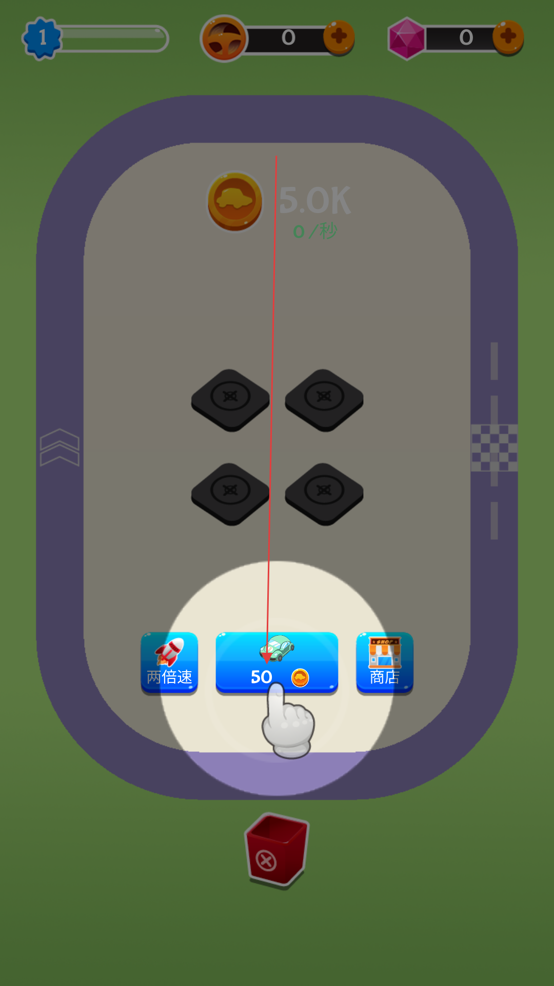 1、进入游戏界面,点击下方标注【50】金币的汽车按钮,消耗金币购买基础车辆,开启车辆收集流程。