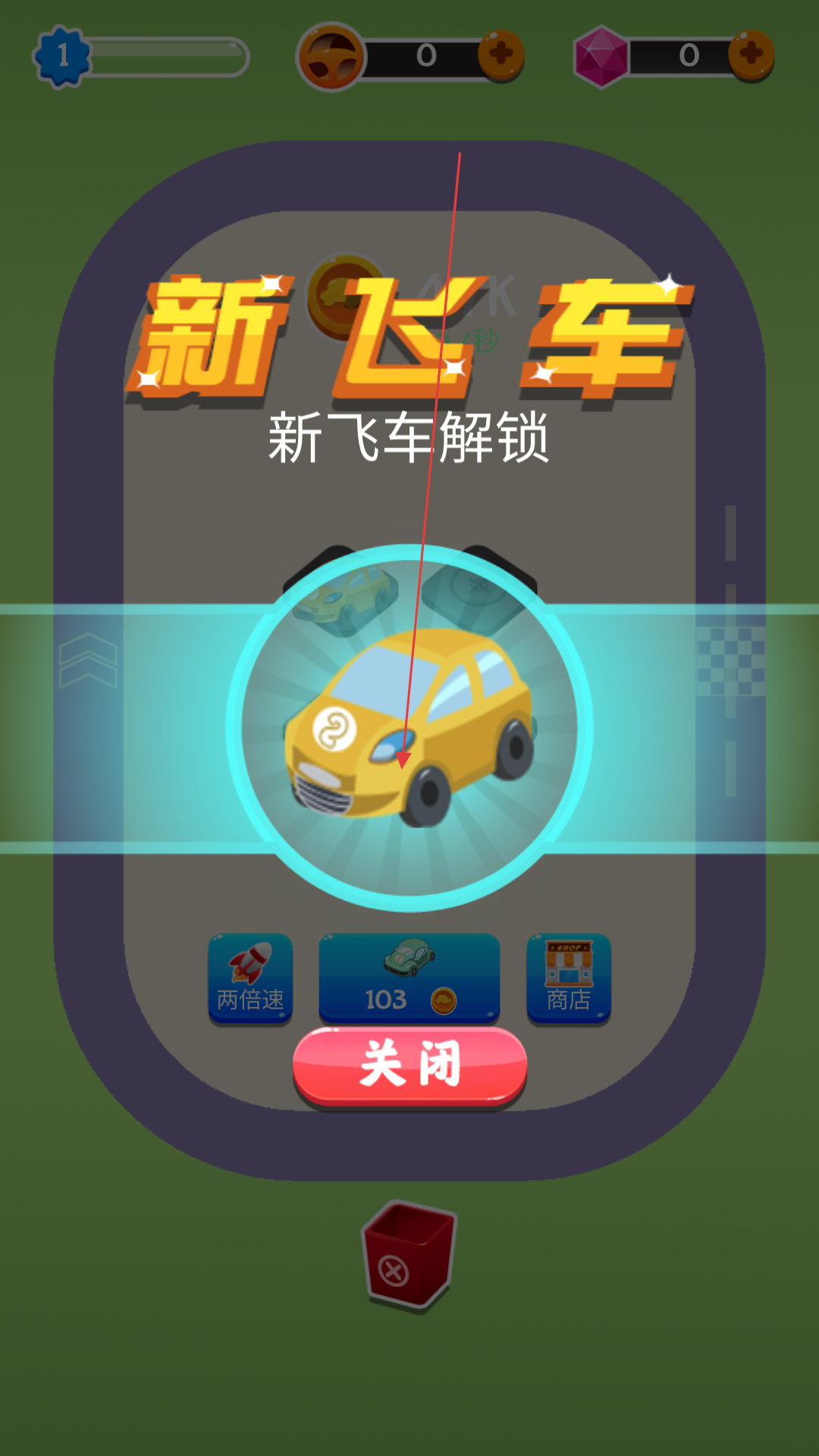 3、合成达到条件后,触发【新飞车新飞车解锁】界面,获得新车辆,点击【关闭】继续游戏,拓展车辆阵容。