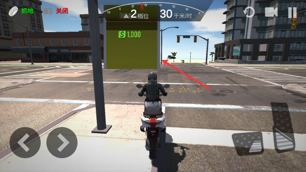 3、骑行时,瞄准道路上含【$1,000】标识的绿色框,用方向按键控车驶入,获取奖励,探索城市。