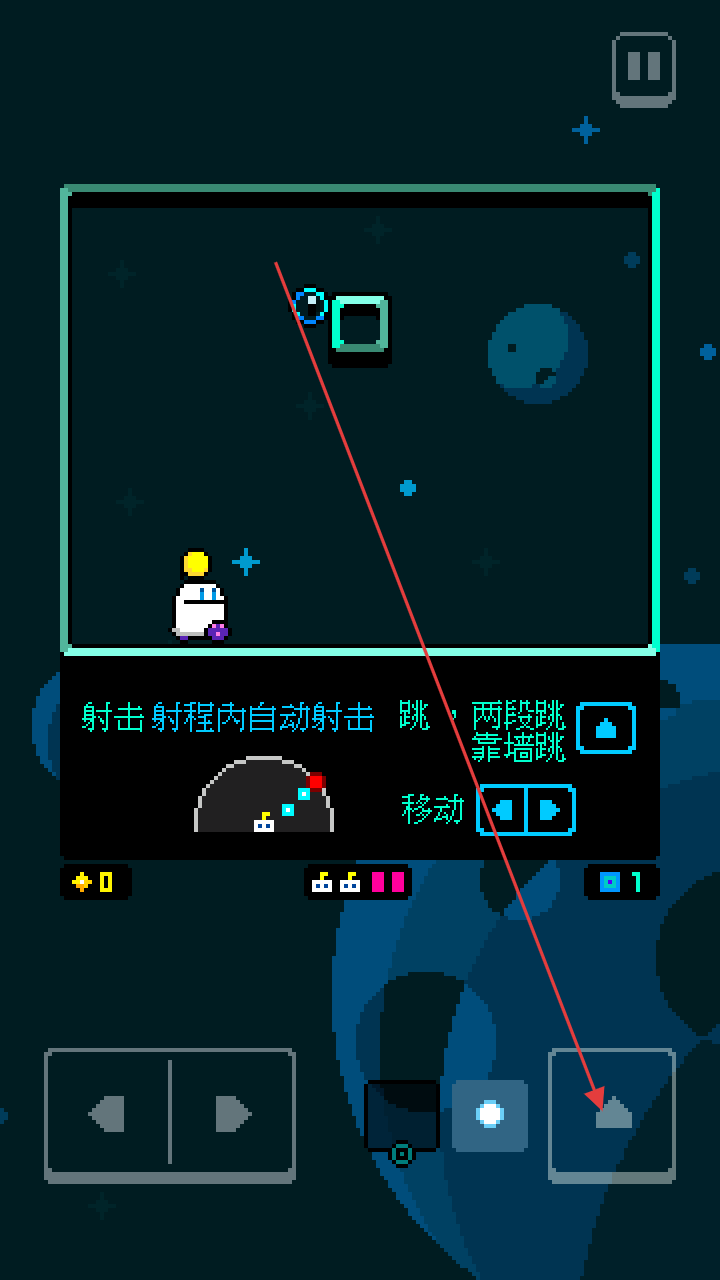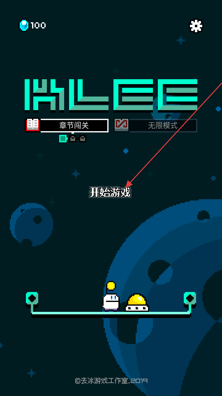 1、在主界面选“章节闯关”或“无限模式”,点击“开始游戏”,操控角色进入太空场景。