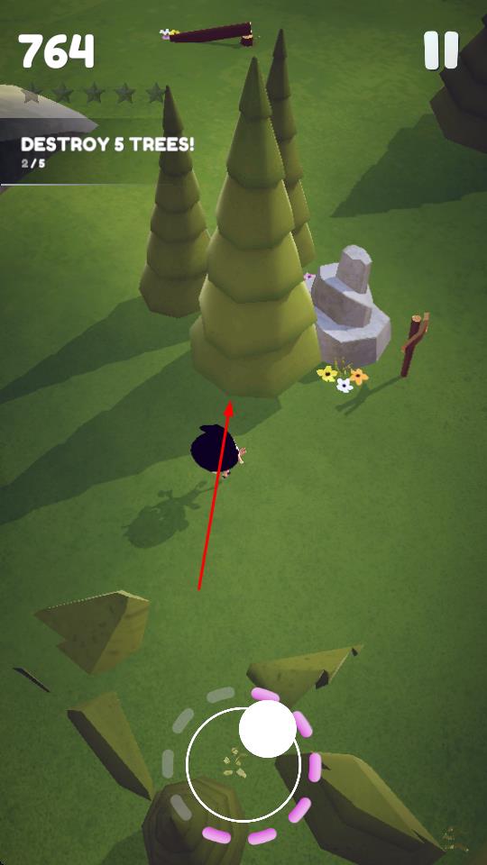 3、“互动破坏”,靠近树木点击破坏按钮,摧毁目标树木;靠近糖果自动收集,完成任务进度。