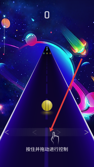 2、操作时,“按住并拖动进行控制”,让球匹配轨道同色节点,跟随音乐完成挑战。