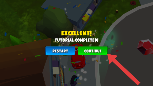 2、显示“EXCELLENT!TUTORIALCOMPLETED!”(太棒了!教程完成!),有“RESTART”(重新开始)和“CONTINUE”(继续)按钮。