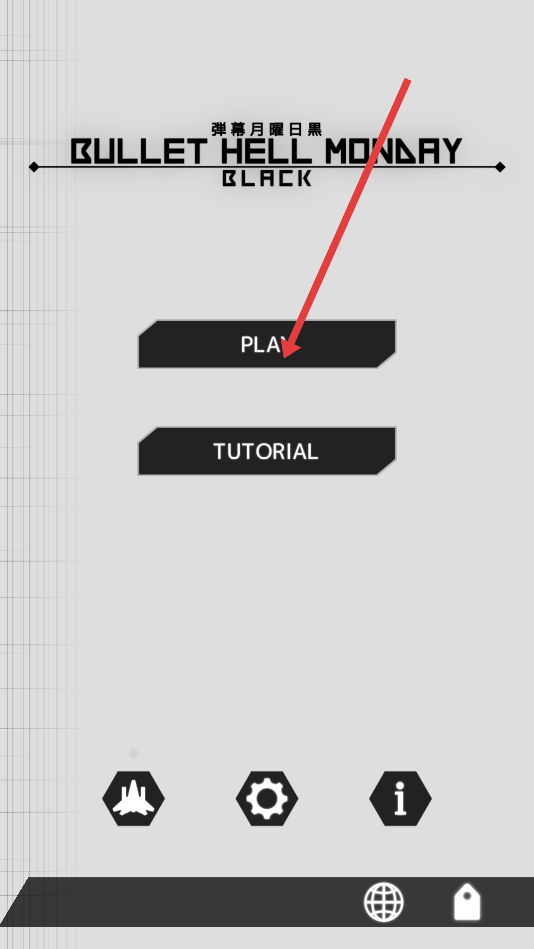 1、进入游戏,点击【TUTORIAL】熟悉操作,或选【PLAY】直接开始,挑战弹幕射击玩法。