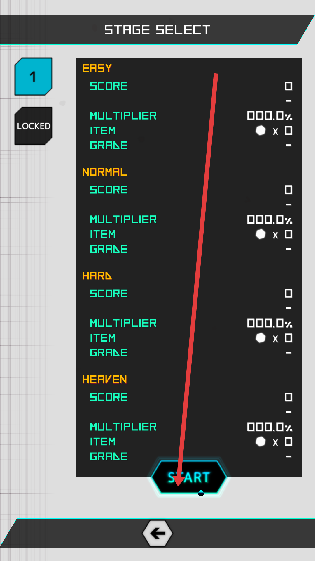 2、在关卡选择界面,选Stage1的【EASY】等难度,点击【START】开启第一关,适应弹幕节奏。