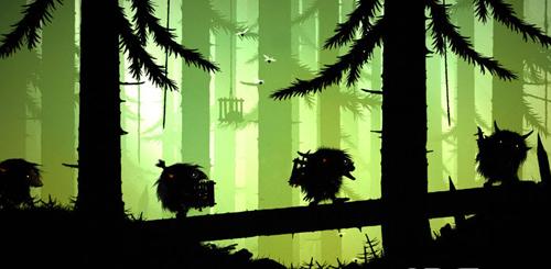 1、启动界面选【new game】,进入森林场景,熟悉剪影风画面与操作(左右箭头移动)。