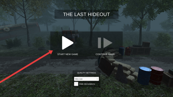 1、点击【START-NEW-GAME】,开启新游戏,进入僵尸生存世界,准备在“最后的藏身处”抵御敌人。