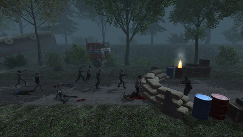 1、突破丧尸包围:面对被丧尸团团包围的危险困境,利用充足的武器弹药建造火力墙,阻止丧尸突破防线,通过持续射击消灭敌人,保障自身安全。