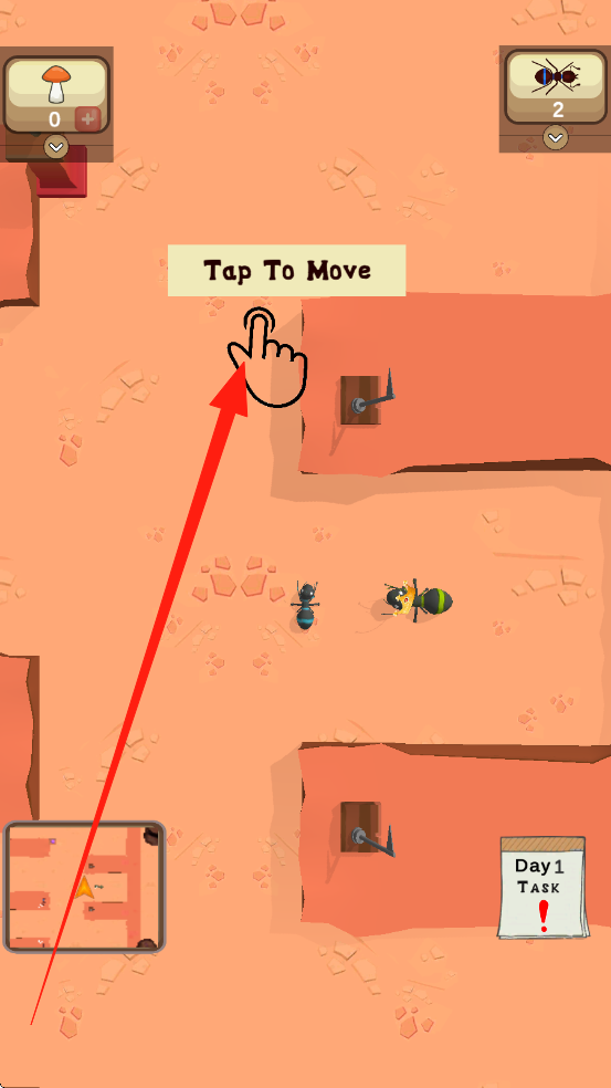 1、交互操作方式:点击屏幕分配蚂蚁职责,滑动调整视角,长按分析关键信息,通过组合不同操作完成复杂管理任务,操作简单易上手。