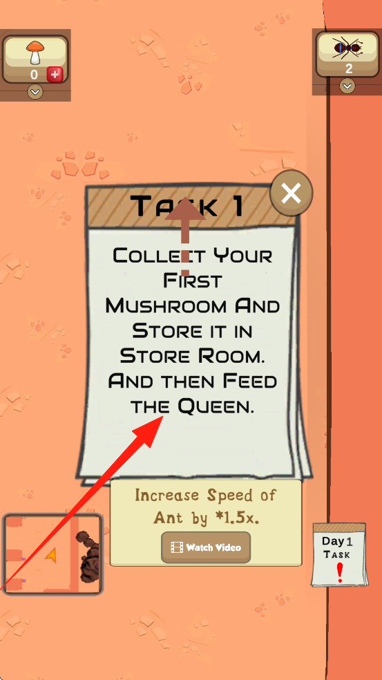 2、合理分配收集的资源,优先升级核心建筑与解锁新蚂蚁种类,通过连续成功发展获取额外奖励,提升蚁群实力。