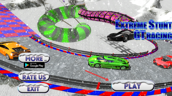 1、点击主界面【PLAY】,进入《Extreme Stunt GT Racing》,选定赛车,开启雪地特技竞速挑战。