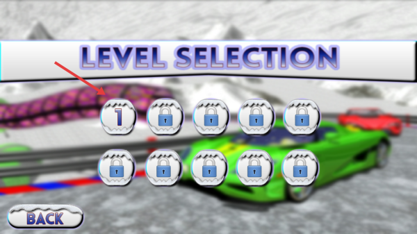 2、在关卡选择页,点击【LEVEL1】(带“1”标识关卡),进入首关,准备驾驶赛车。