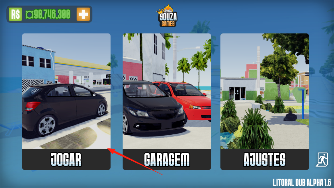 2、在主菜单,点击“JOGAR”,进入驾驶场景,可选择不同场景(如加油站、街道)开始游戏,借场景选择机制,开启驾驶玩法,体验玩法模式的多样性,感受自由选择的乐趣。