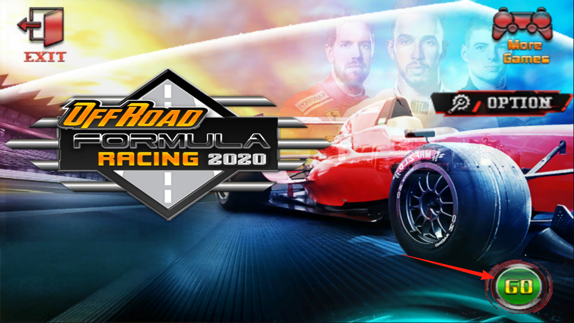 1、进入汽车方程式赛车游戏主界面,点击“GO”按钮,启动赛车挑战,借启动机制,开启越野赛车之旅,体验竞速玩法的初始环节,感受赛事即将开始的紧张感。