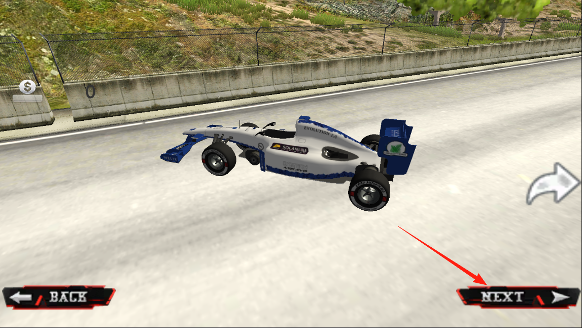 2、在赛车选择界面,确认蓝白赛车后,点击“NEXT”,进入赛道准备,借赛车确认与流程推进机制,开启竞速前的过渡环节,体验从选车到比赛的衔接,感受玩法的连贯性。