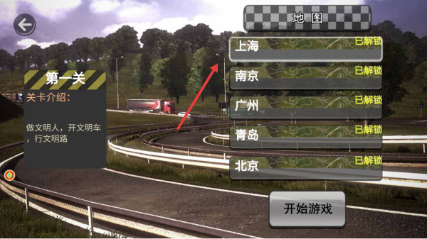 2、在关卡选择,选【上海】地图(已解锁),点击【开始游戏】,进入上海赛道,准备骑行。