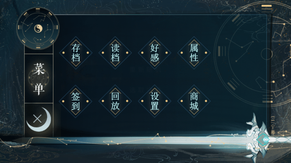 3、菜单页可【存档】【读档】,查【好感】【属性】,参与【签到】,【回放】剧情,调【设置】,逛【商城】推进游戏进程。