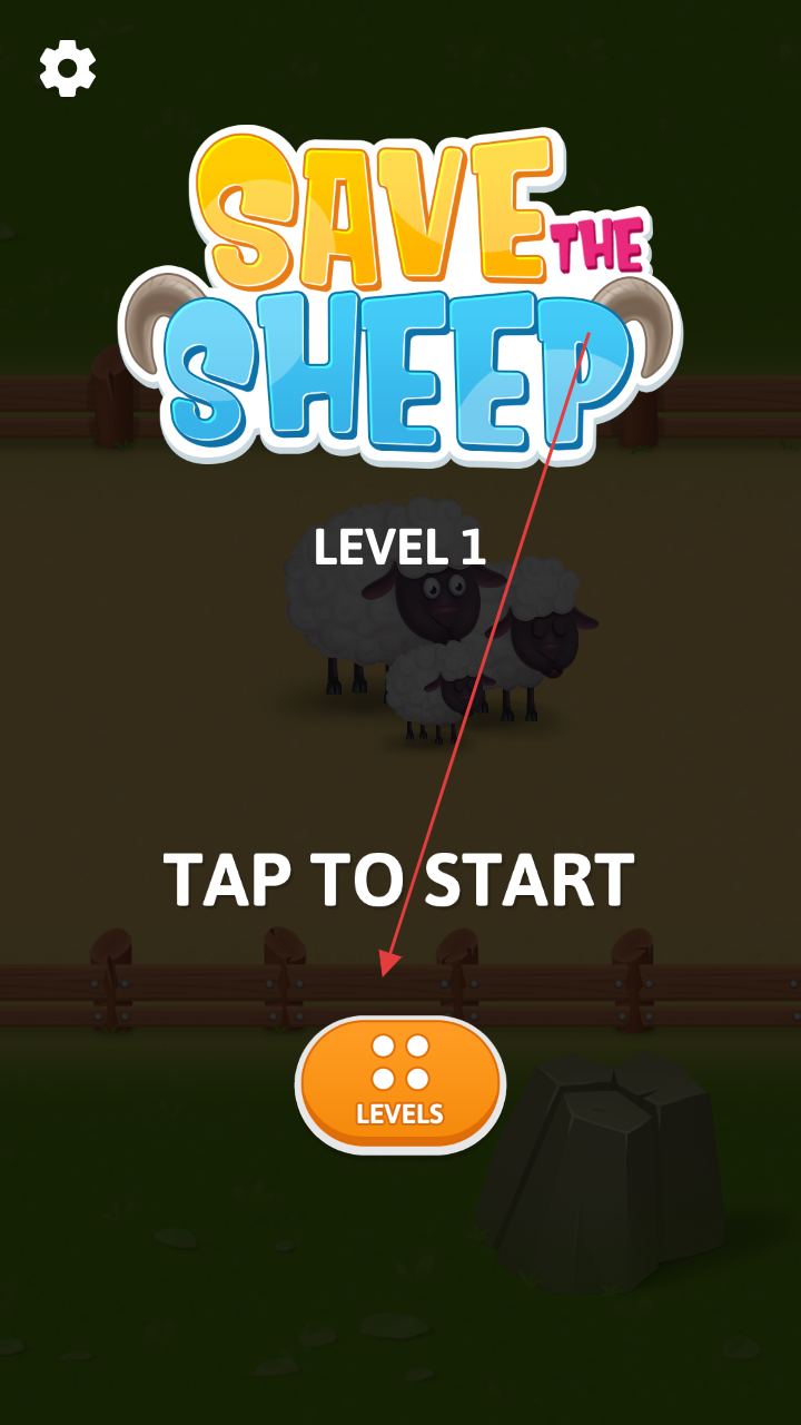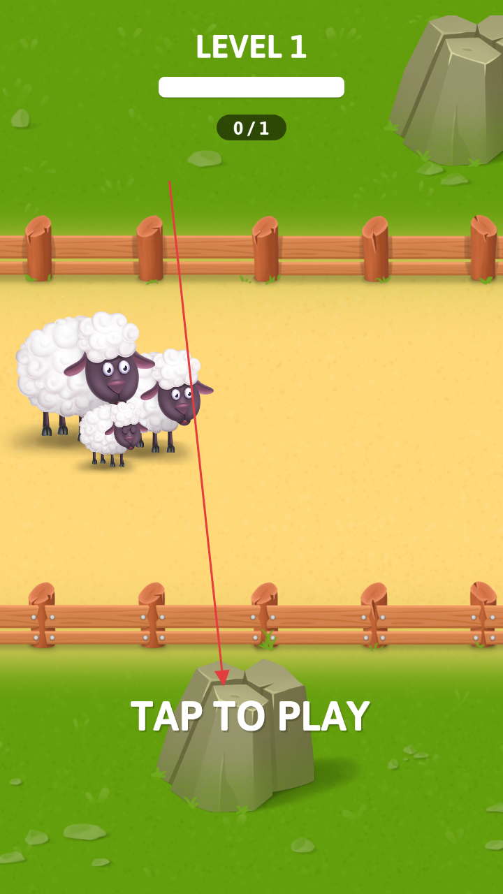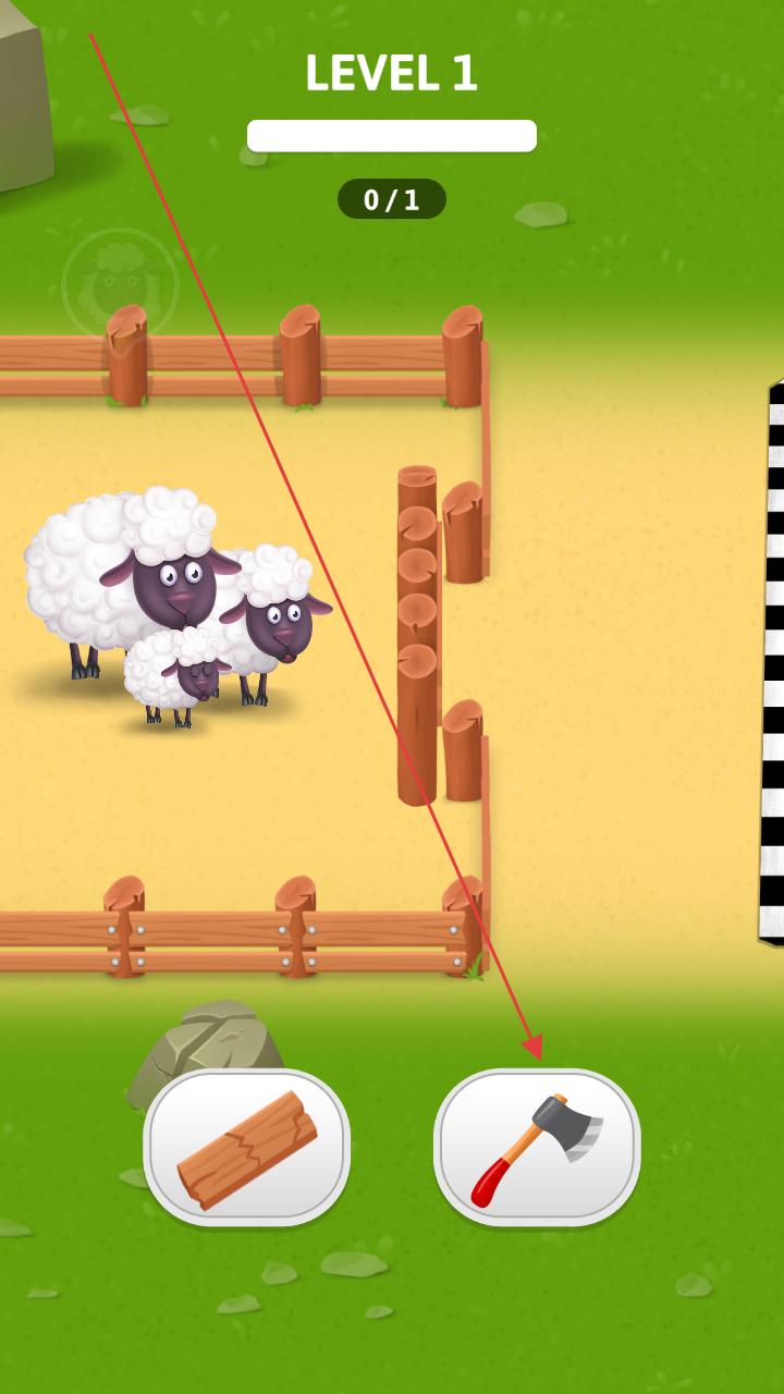 2、进入关卡1场景,点击“TAPTOPLAY”,利用斧头、木材等道具,清除小羊周边障碍。
