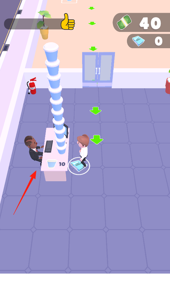 3、角色携带文件与杯子,前往同事工位,依据绿色箭头提示,与同事互动,借任务交互机制,推进办公模拟流程,体验职场协作玩法,感受角色间互动的沉浸感。