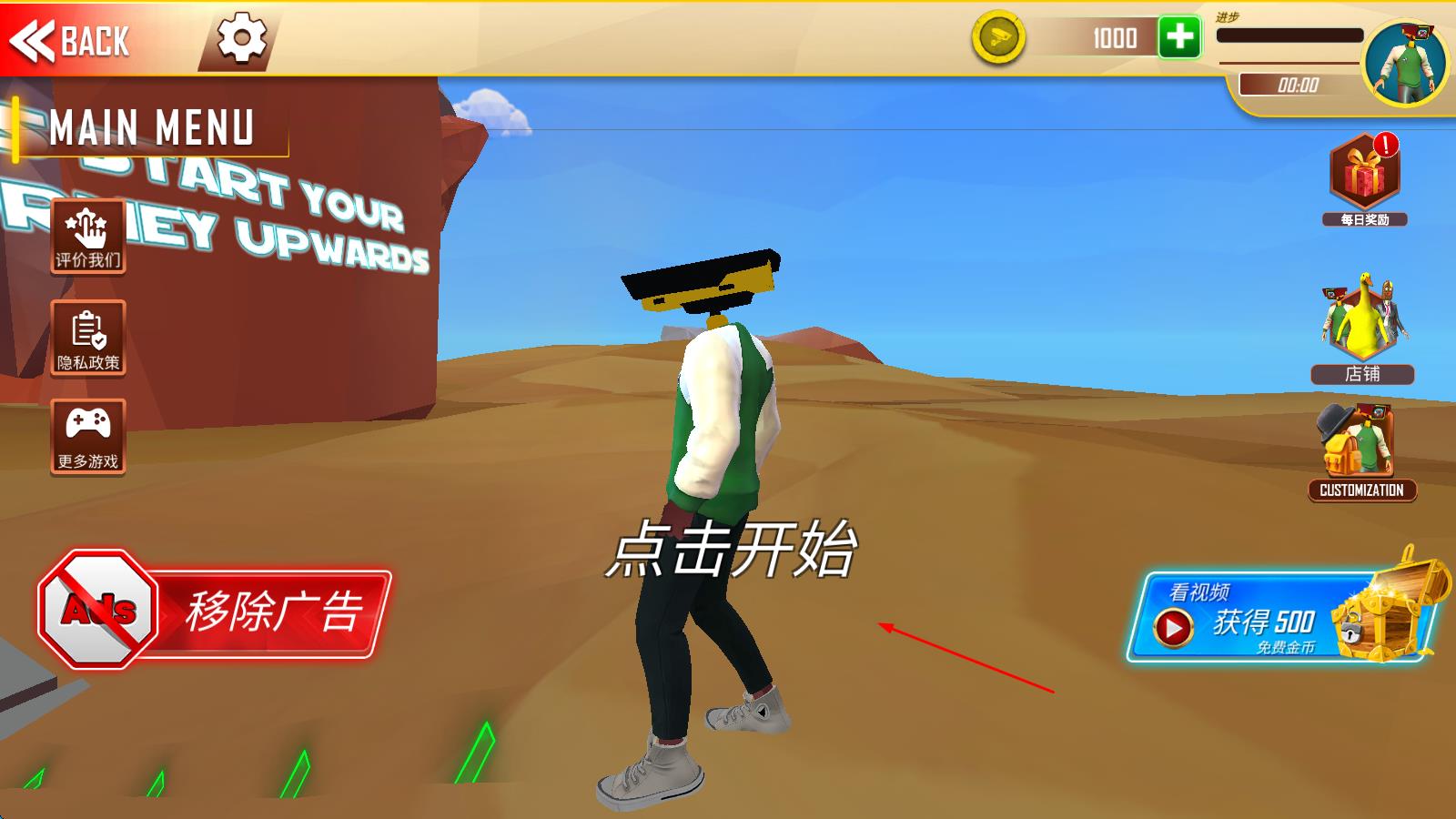 1、进入游戏,选择操控可爱的监控人开启跑酷之旅,轻点屏幕操控监控人起跳,长按实现滑行,以此躲避起始路段的简单障碍。