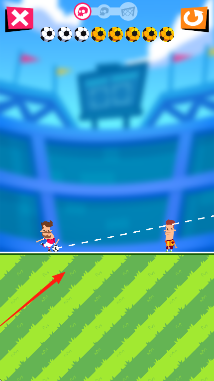 1、进入关卡,观察箭头轨迹,调整射门角度,点击屏幕让角色踢出足球,尝试命中目标。