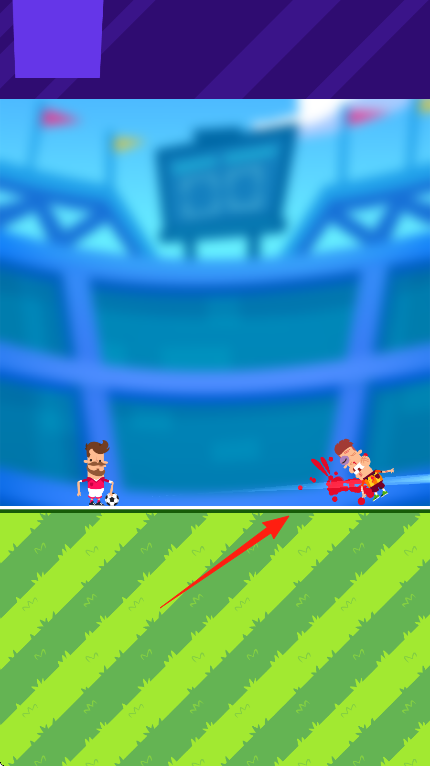 2、遇到敌方球员(箭头指向),利用足球轨迹,让球绕过或撞击,击倒障碍,继续推进。