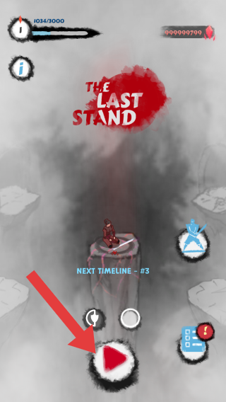 1、画面呈现游戏标题、角色站在场景中,还有“NEXTTIMELINE#3”等信息,红箭头指向开始/继续按钮,属于动作或策略类,涉及时间线推进、战斗等玩法。