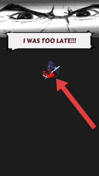 3、上方文字“IWASTOOLATE!!!”意为“我太迟了!!!”,结合下方角色周围有血迹的场景推测,是游戏中角色任务失败或遭遇不幸的画面。