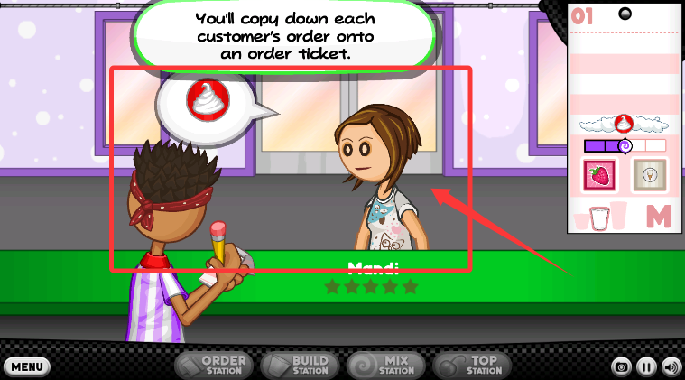 3、留意顾客头顶的订单气泡,按照提示要求制作对应口味的特色冰棍。