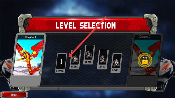 1、点击【PLAY】,进入游戏,选择“Chapter1”的“LEVEL-1”,操控机器蛇变形机甲,开启沙漠战斗。